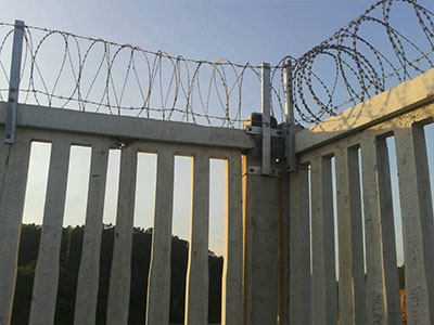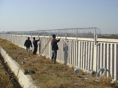 鐵路防護(hù)柵欄一改往日焊接鋼絲網(wǎng)柵欄、刺絲網(wǎng)柵欄等產(chǎn)品,改為防御性強(qiáng)、壽命長(zhǎng)久的:鋼筋混凝土柵欄+0.5米高刺絲滾籠的防護(hù)柵欄。詳細(xì)內(nèi)容如下: