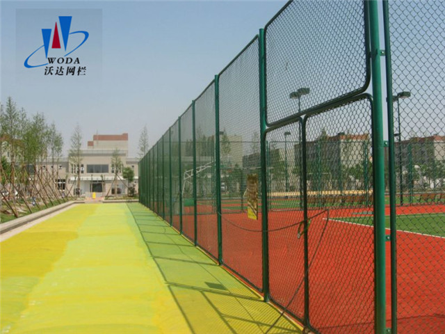 學(xué)校球場護(hù)欄表面處理:護(hù)欄采用PE/PVC包塑絲,立柱、邊框采用噴塑、浸塑處理。