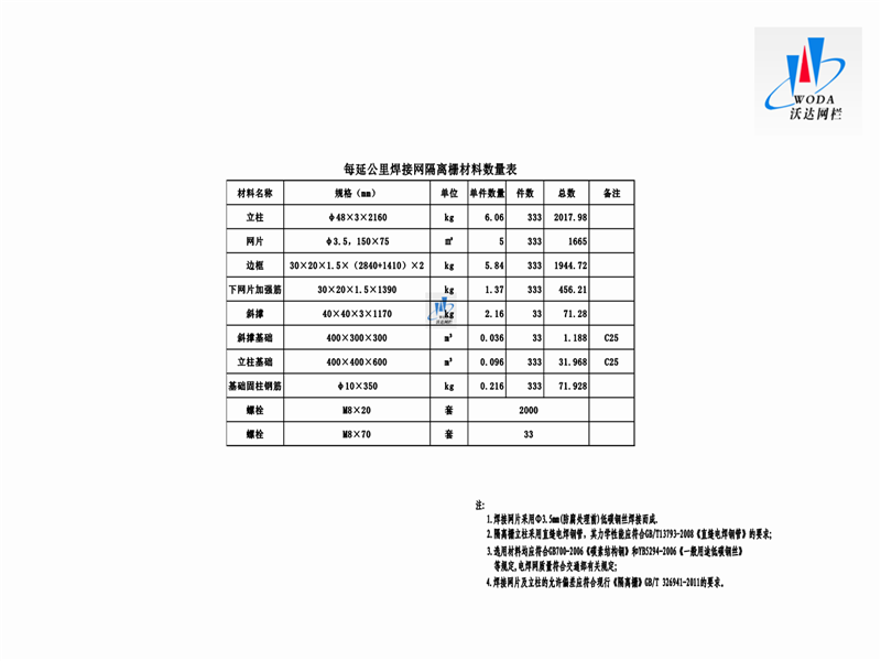 焊接網隔離柵每延公里材料數(shù)量表下圖