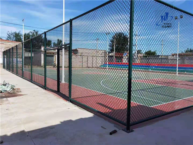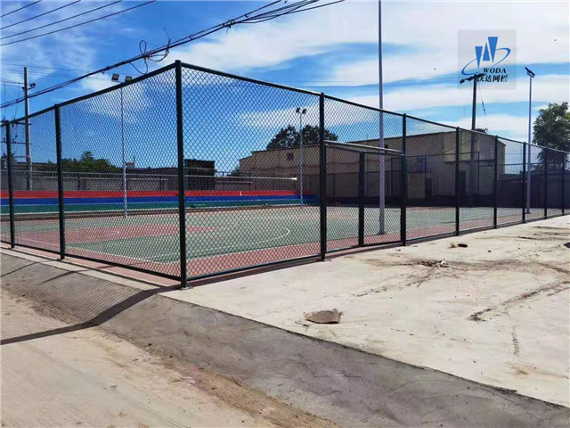 (2)底盤:要求地面硬化,在地面上打上膨脹螺栓將立柱予以固定。網(wǎng)球場(chǎng)圍網(wǎng)的安裝有組合式的和現(xiàn)場(chǎng)焊接兩種圍網(wǎng)。網(wǎng)球場(chǎng)護(hù)欄現(xiàn)場(chǎng)焊接的要麻煩的多,一般推薦客戶選用可以組裝的。