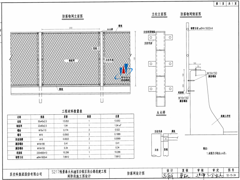 1、橋梁防落物網(wǎng)設(shè)置在下穿包蘭鐵路的橋梁護(hù)欄上,防落物網(wǎng)的網(wǎng)片采用鋼板網(wǎng)的形式,網(wǎng)片規(guī)格為22x60x2.5mm,防落網(wǎng)通過膨脹螺栓固定在橋梁護(hù)欄上。防落物網(wǎng)防腐要求與防眩網(wǎng)的防腐標(biāo)準(zhǔn)一致。
