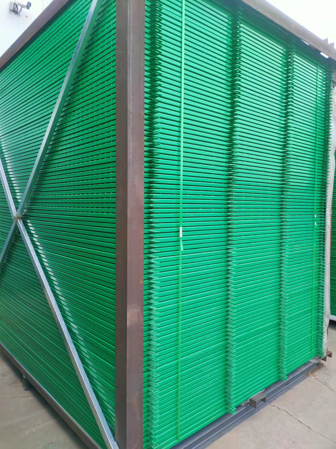 9.5日楊總咨詢(xún)本廠的框架隔離柵網(wǎng),用于出口國(guó)外,作為圍檔使用。具體的咨詢(xún)事宜當(dāng)中,有一項(xiàng)是產(chǎn)品須經(jīng)過(guò)牢固包裝,要經(jīng)過(guò)海上一個(gè)月的漂流。經(jīng)過(guò)我廠技術(shù)人員的研究最終報(bào)給客戶(hù)一個(gè)經(jīng)濟(jì)合理的的報(bào)價(jià),我廠于次日下午,與客戶(hù)最終簽訂了出口框架護(hù)欄網(wǎng)的合同,并已經(jīng)收到客戶(hù)的產(chǎn)品訂金。貨物加工周期一周,于昨天生產(chǎn)完畢,考慮客戶(hù)不用集裝箱,直接裝船,我們用H鋼焊接成型,方便裝卸貨物。見(jiàn)下圖: