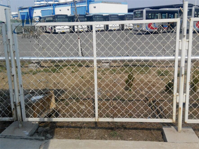 (2)立柱采用冷拔鋼管,外邊長50mm,壁厚3mm,兩端加堵頭,埋深40cm。斜撐采用45×45×4mm角鋼。網(wǎng)片采用φ4mm低碳鋼絲,間距7.5×15cm(寬×高),頂部以下30cm處向外折。網(wǎng)片框架為30×20mm。網(wǎng)片沿立柱中心線設置。