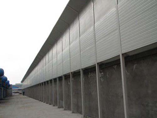 廠區(qū)隔音屏(聲屏障)主要由鋼結(jié)構(gòu)立柱和吸隔聲屏板兩部分組成,立柱是隔音墻的主要受力構(gòu)件,它通過螺栓或焊接固定在墻體或地面預(yù)埋鋼板上;吸隔聲板是主要的隔聲吸聲構(gòu)件,它通過高強(qiáng)彈簧卡子將其固定在H型立柱槽內(nèi),形成隔音墻。